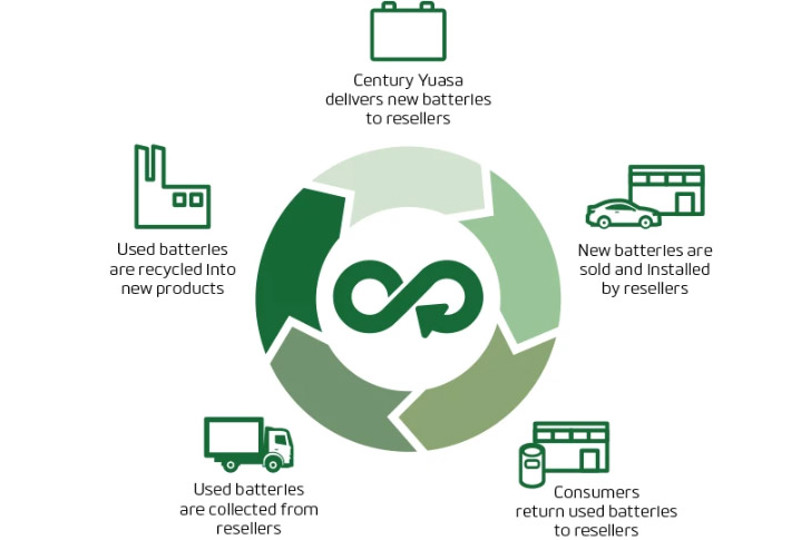 - Use of recycled lead in Century Yuasa’s batteries. Saving the earth’s resources by using recycled materials.